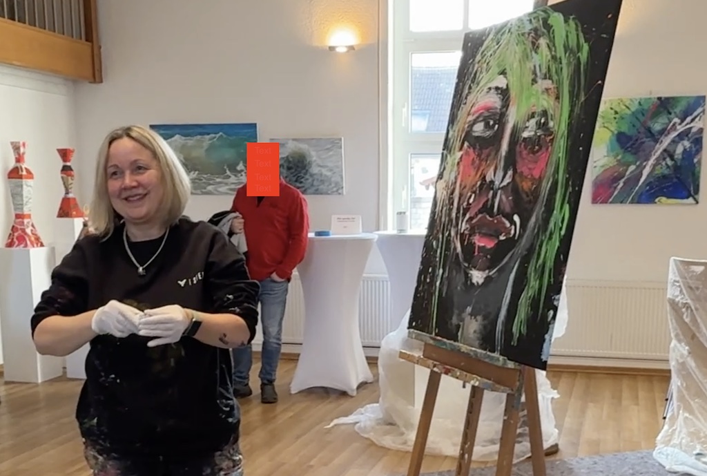 Dieses Live-Painting mit der Künstlerin Éva Balogh fand im Rahmen der Mitgliederausstellung „Artgenossen“ des Vereins KunstRaum Neureut e.V. statt. Zahlreiche Besucherinnen und Besucher haben das Event hautnah miterlebt. Das Publikum verfolgte den Aufbau des Werkes aufmerksam und erlebte eine Transformation in Echtzeit: von einer leeren Leinwand zu einem kraftvollen, ausdrucksstarken Bild.
